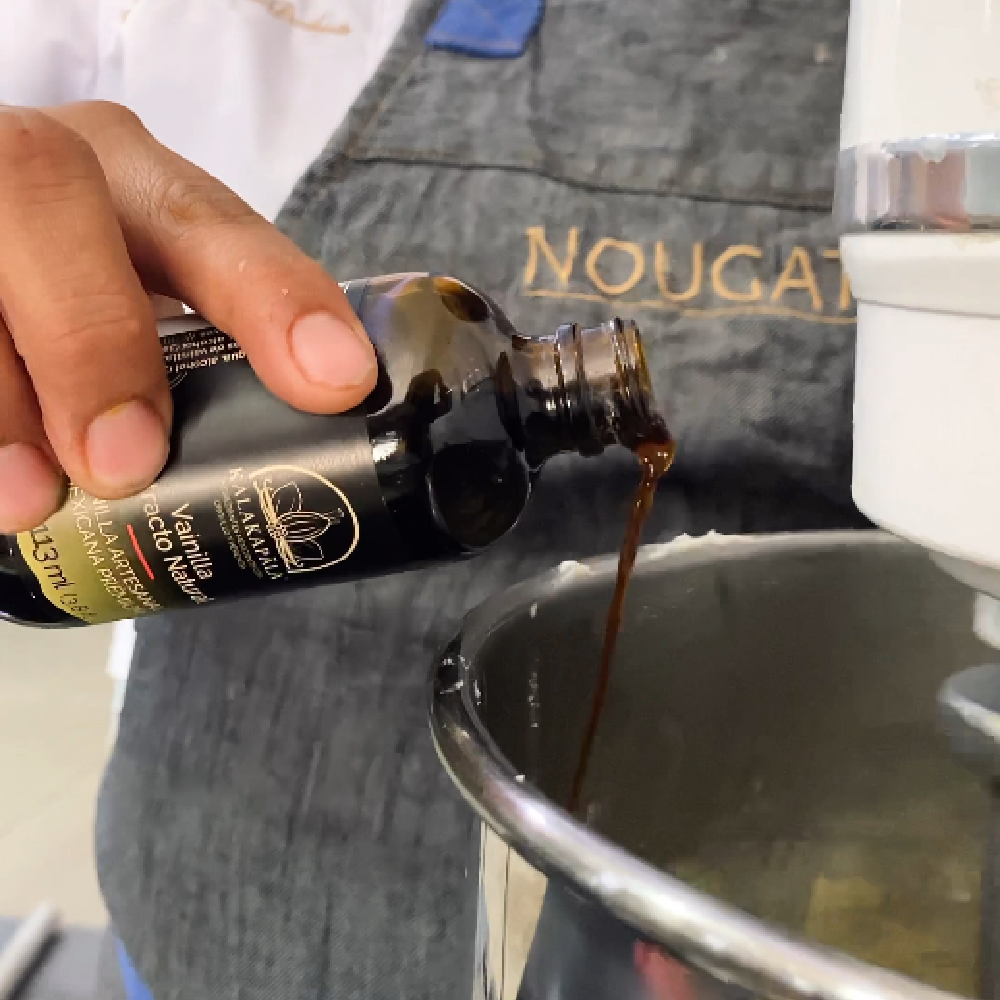 Líquido de color ámbar que se obtiene macerando las vainas en una solución de agua con