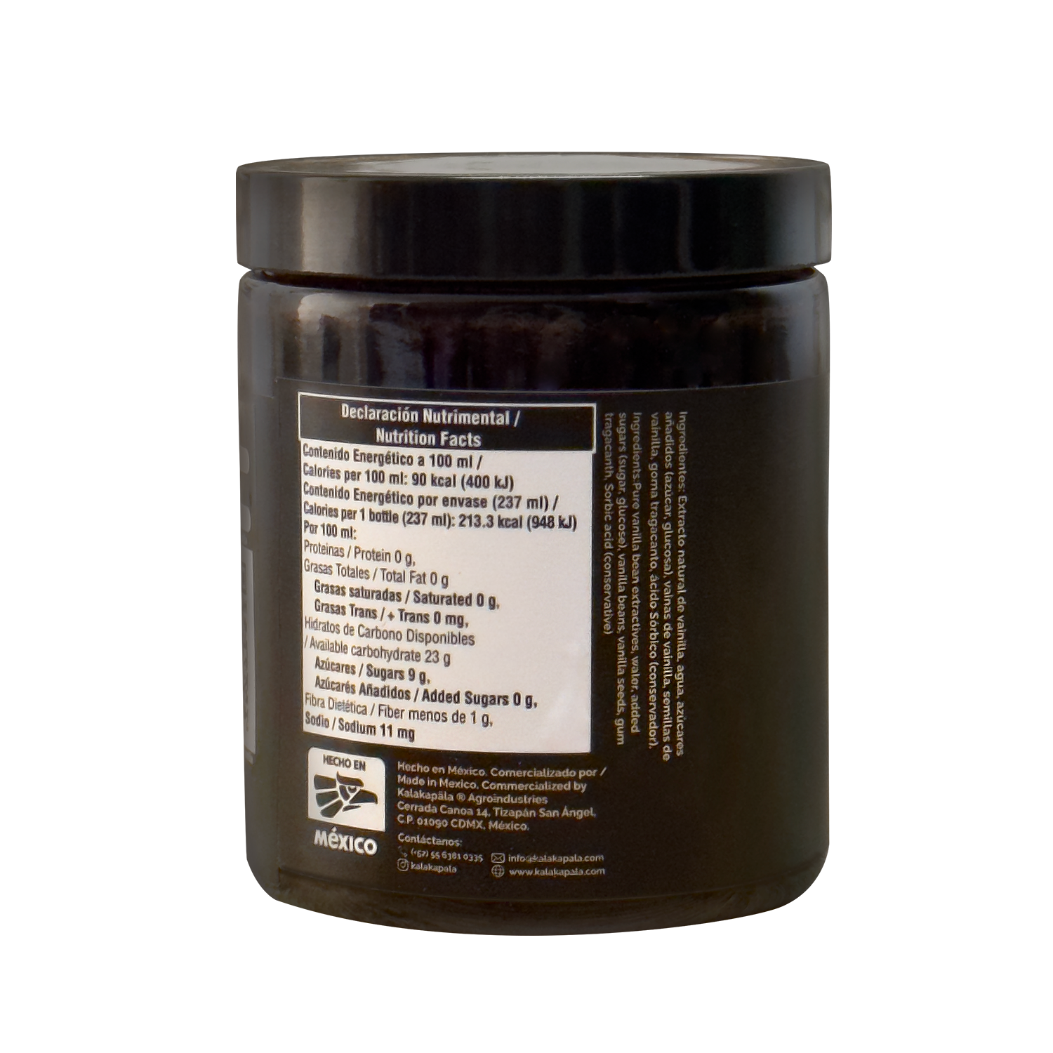 Agua, alcohol (35%) y extracto de vainas de vainilla