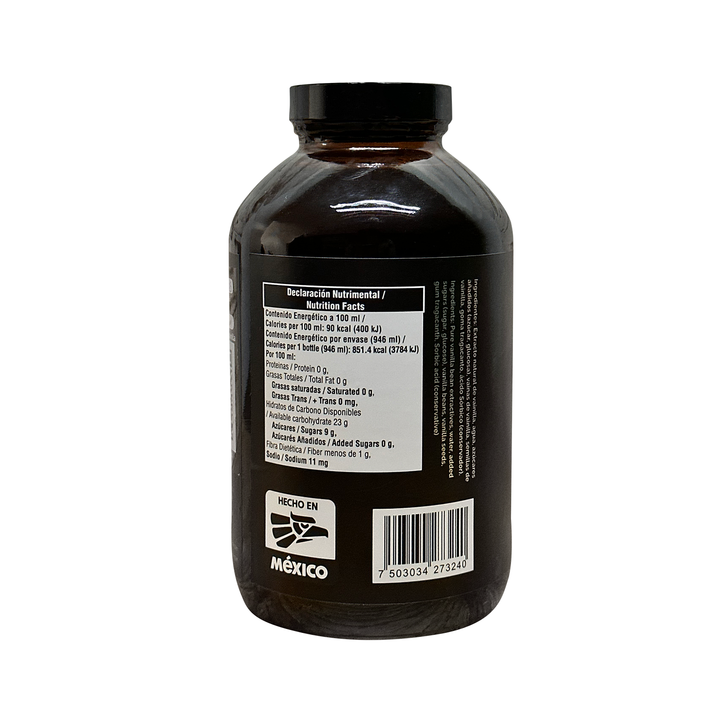 Agua, alcohol (35%) y extracto de vainas de vainilla