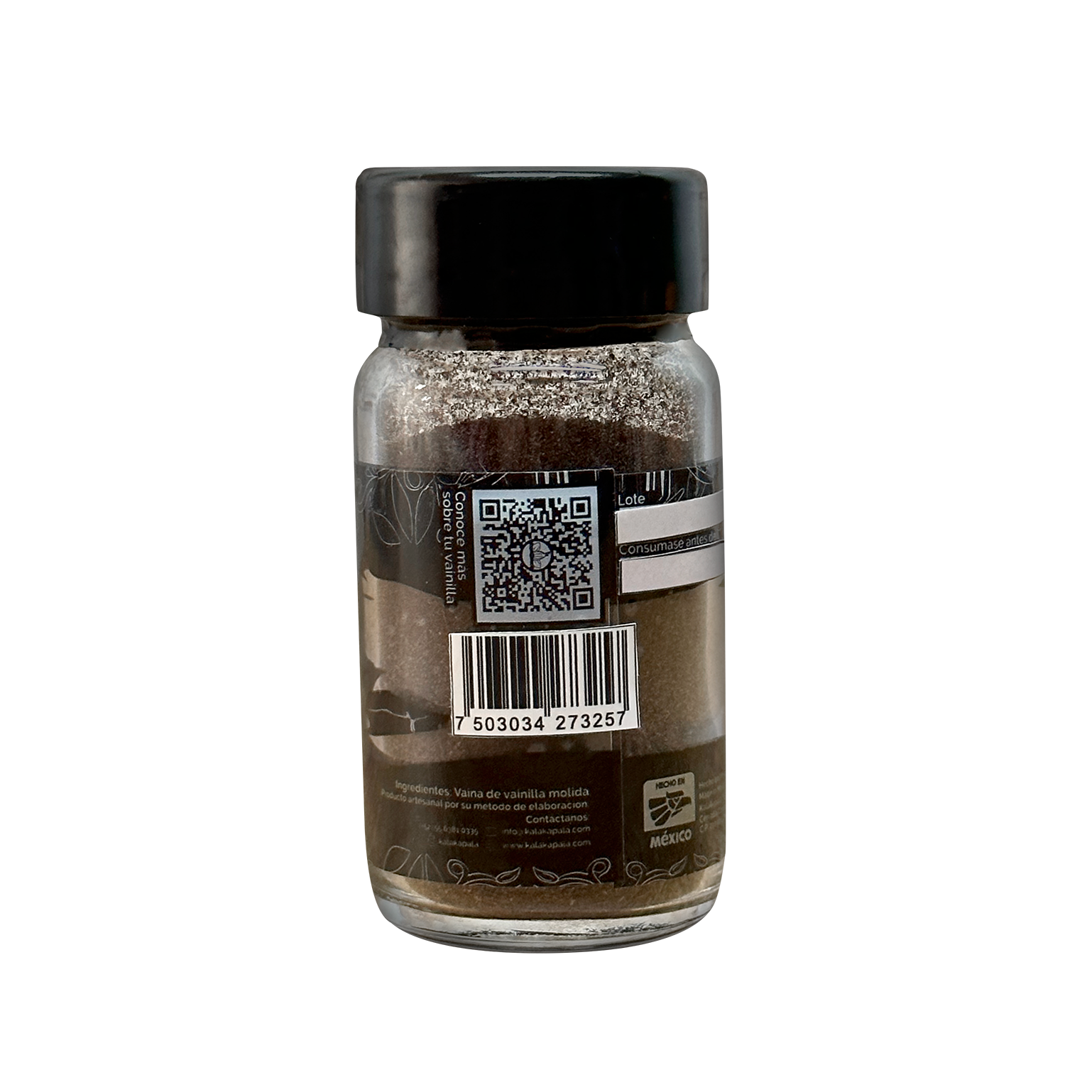 proceso de molido, la vaina de vainilla es el único ingrediente utilizado para asegurar la