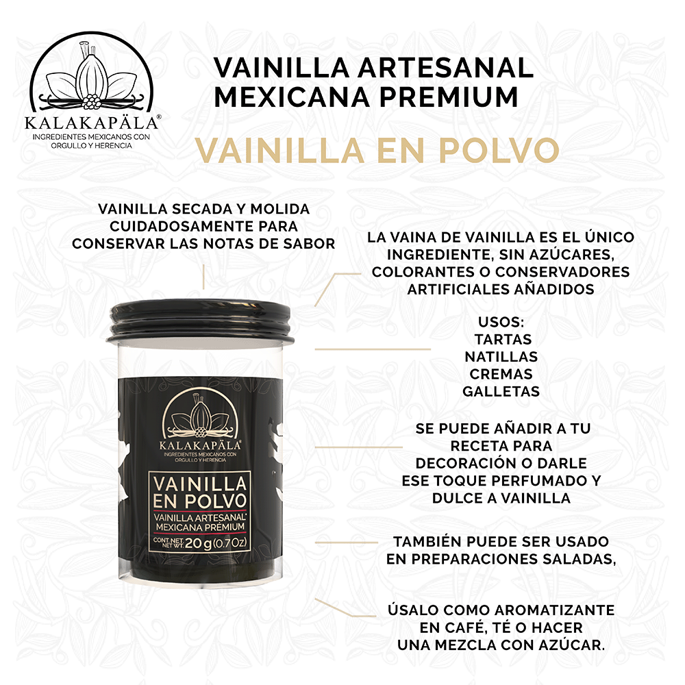 añadir a tu receta para decoración o darle ese toque perfumado y dulce a vainilla. El polvo